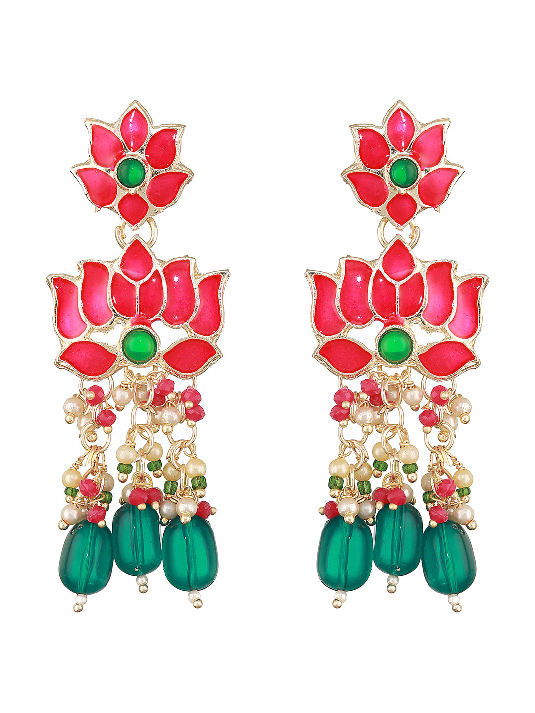 Jazz And Sizzle Gold-Plated Minakari Lotus Shaped & Onyx Beaded Jewellery Set With Ring