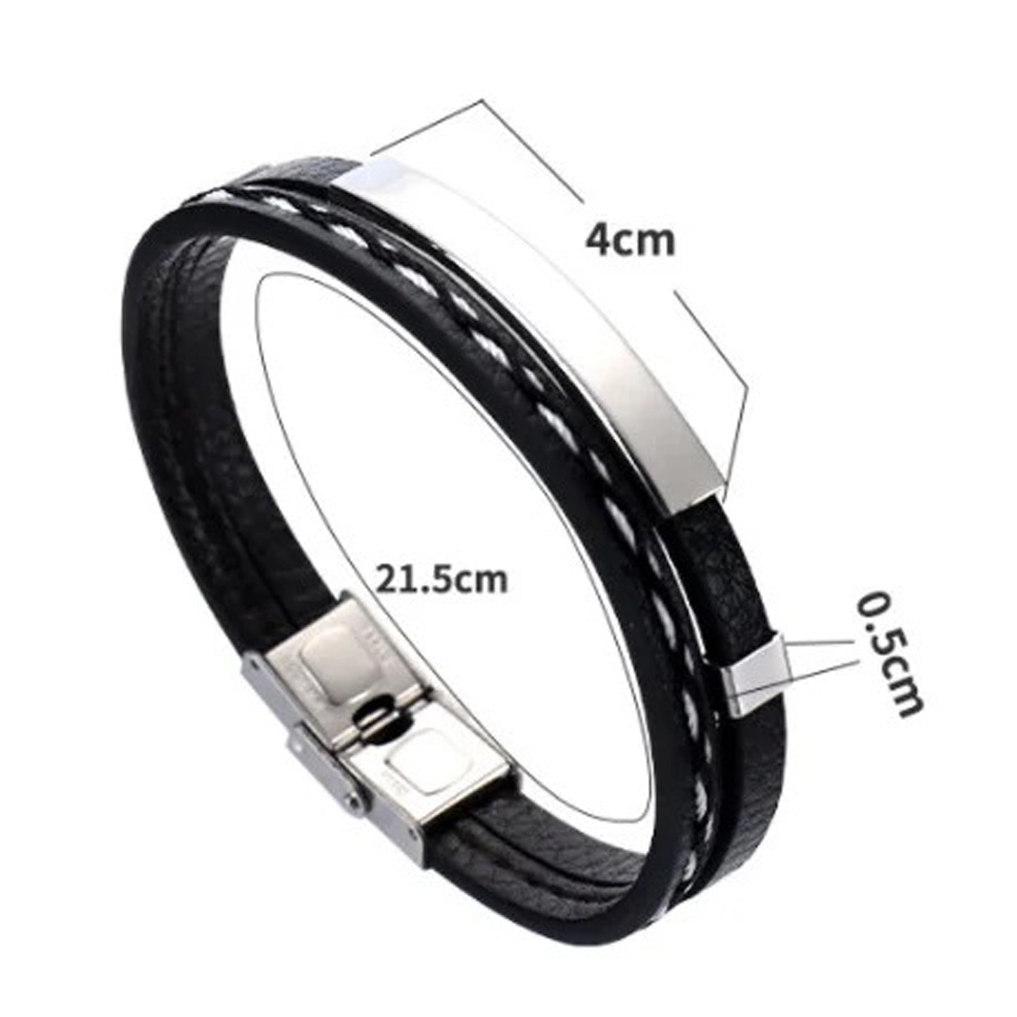 Jazz and Sizzle Men Leather Silver-Plated Kada Bracelet