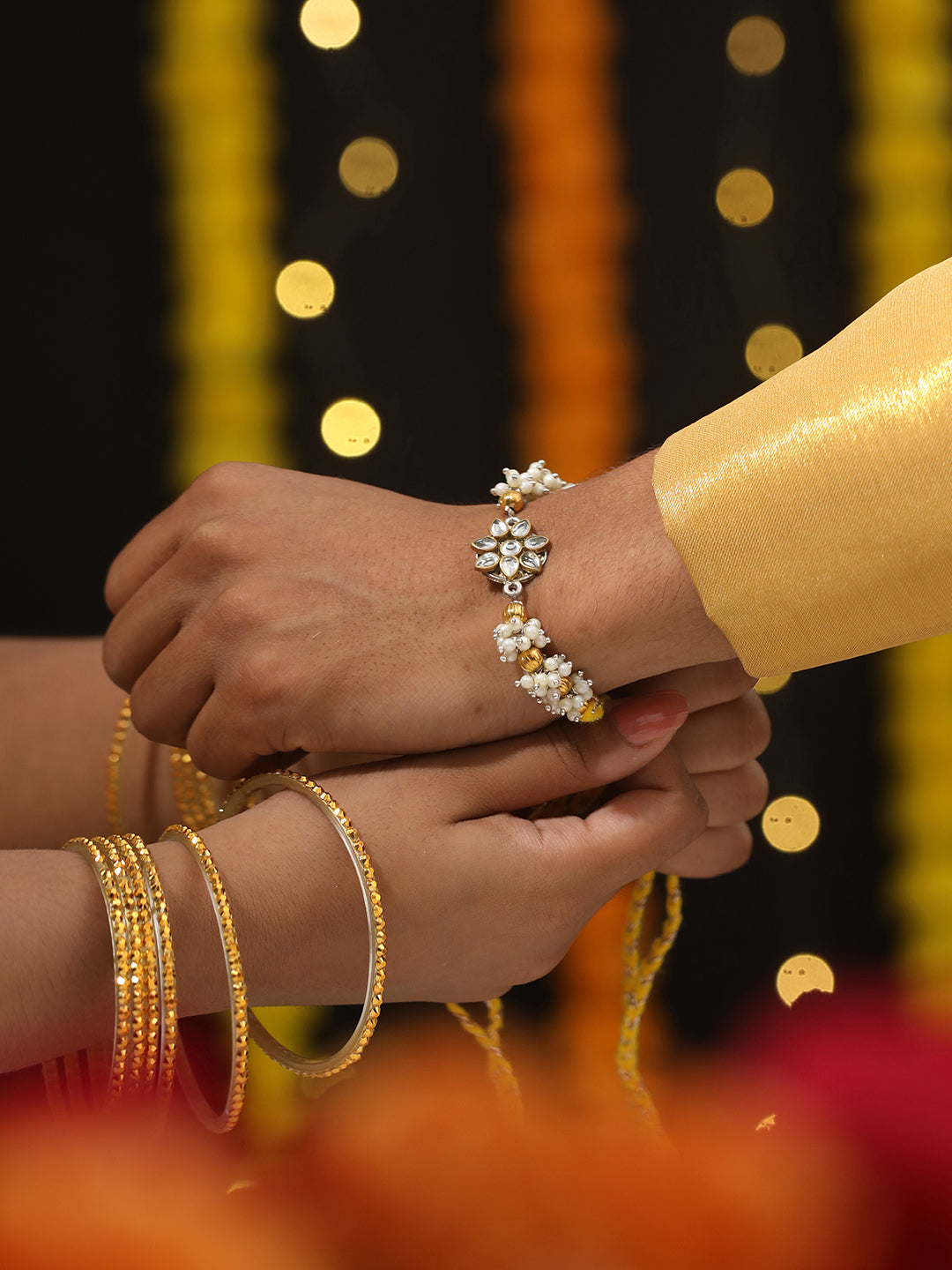Jazz and Sizzle Set of 2 Kundan Studded & Mogra Beaded Bhaiya Bhabhi Rakhi with Roli & Chawal