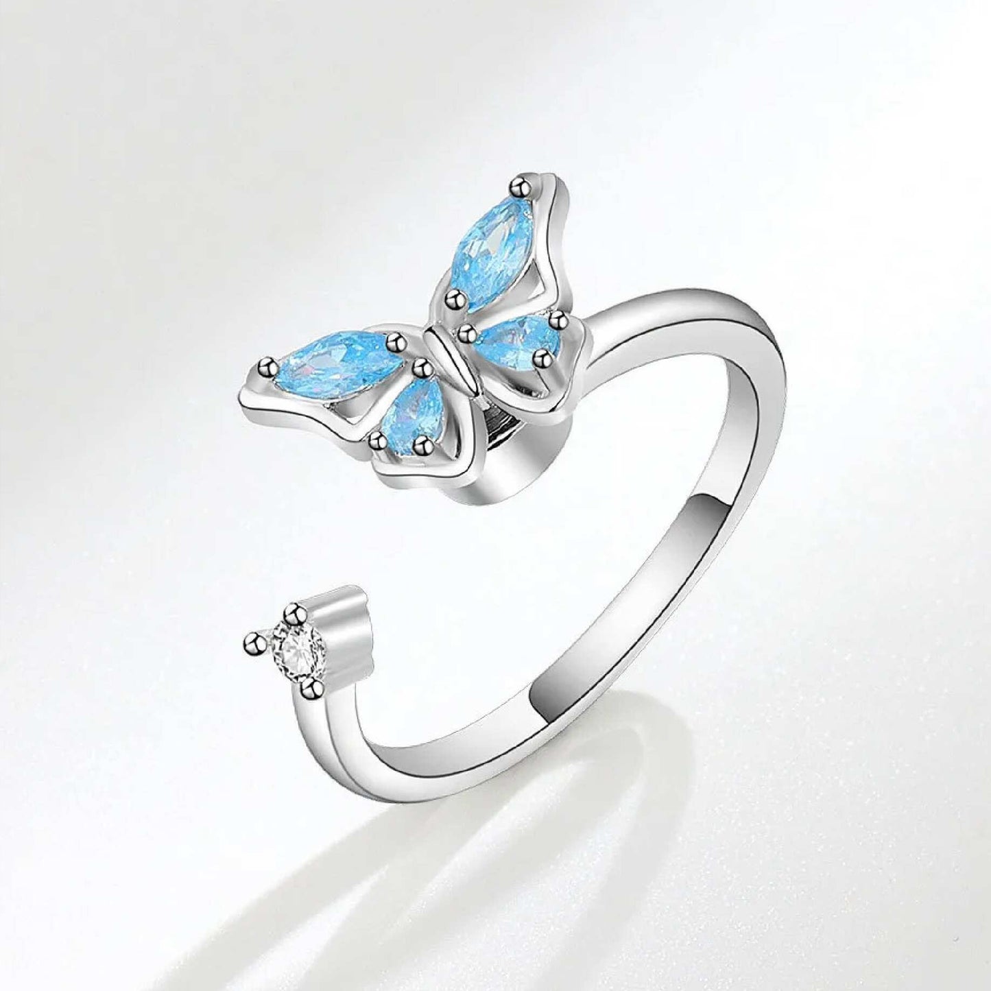 Jazz And Sizzle Silver Plated Blue Stone & Butterfly Shaped Ring for Valentines Gift