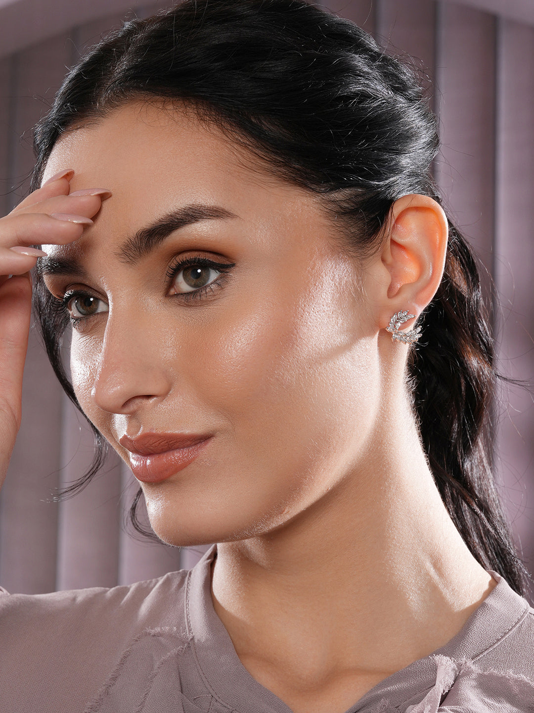 Jazz And Sizzle Silver Plated American Diamond Studded Contemporary Studs