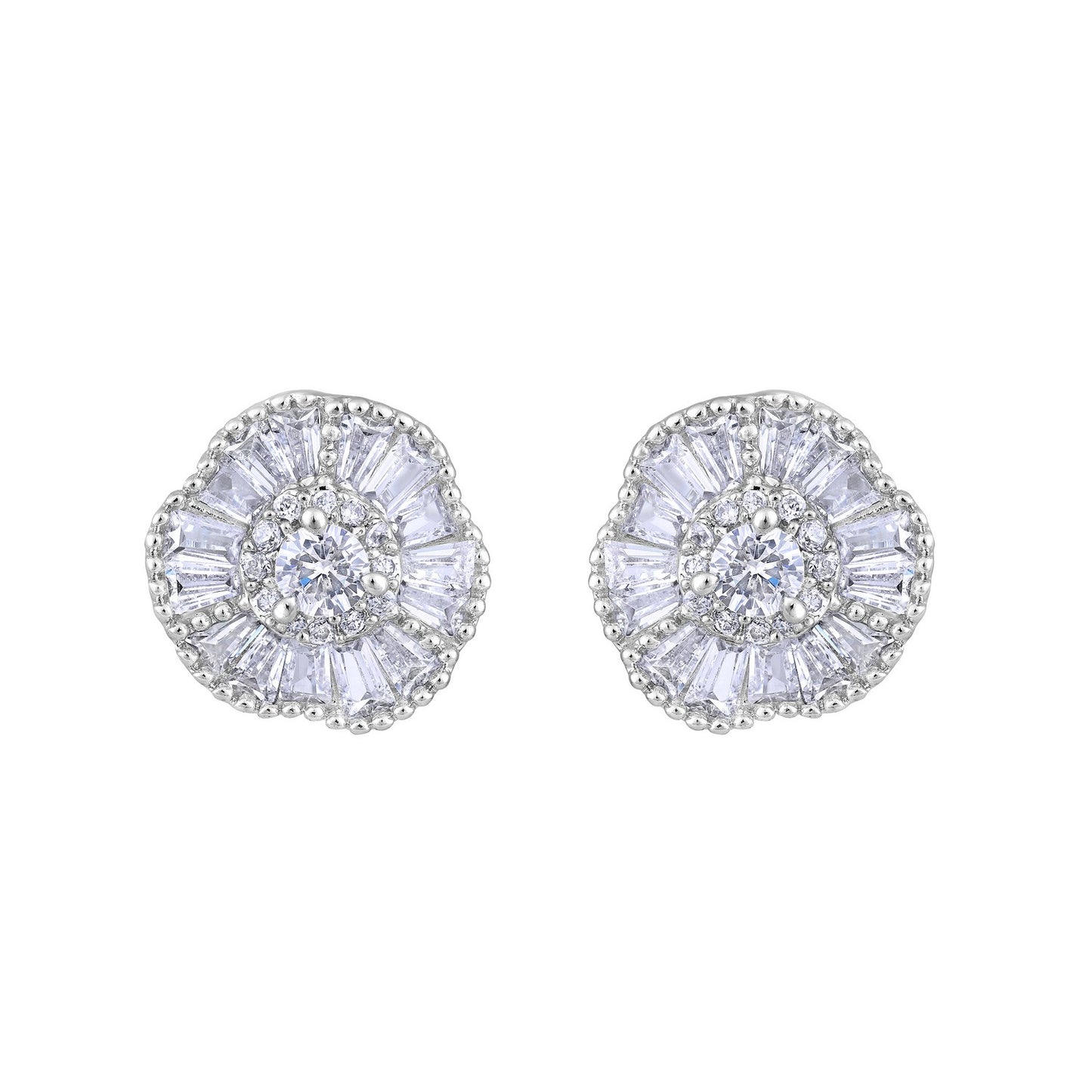 Jazz And Sizzle Silver-Plated American Diamond Studded Floral Stud Earrings