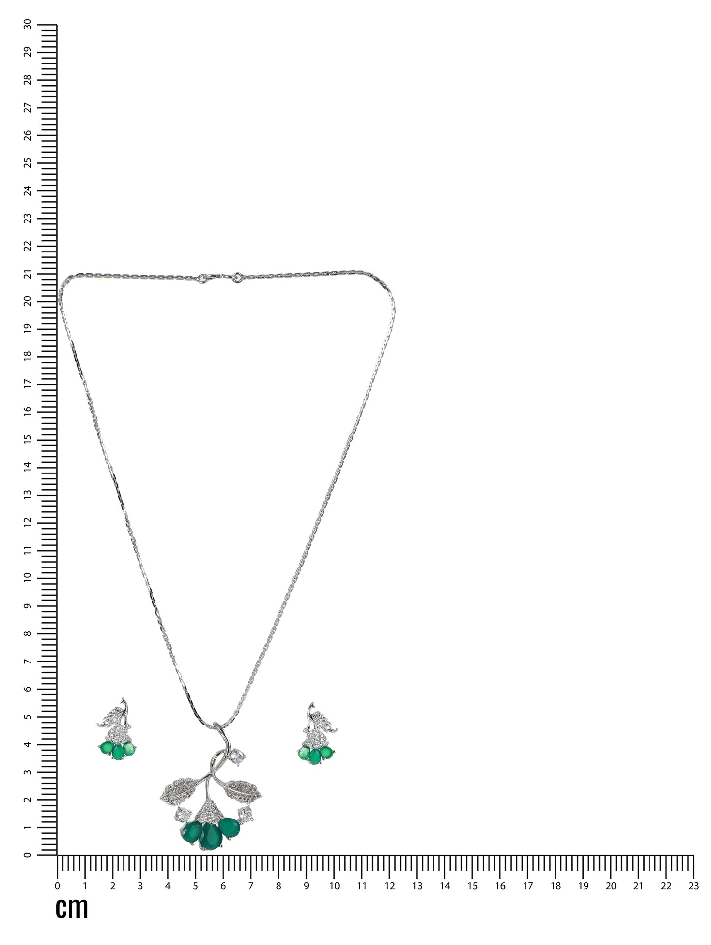 Green American Diamond Silver Plated statement Pendant & Earring Set