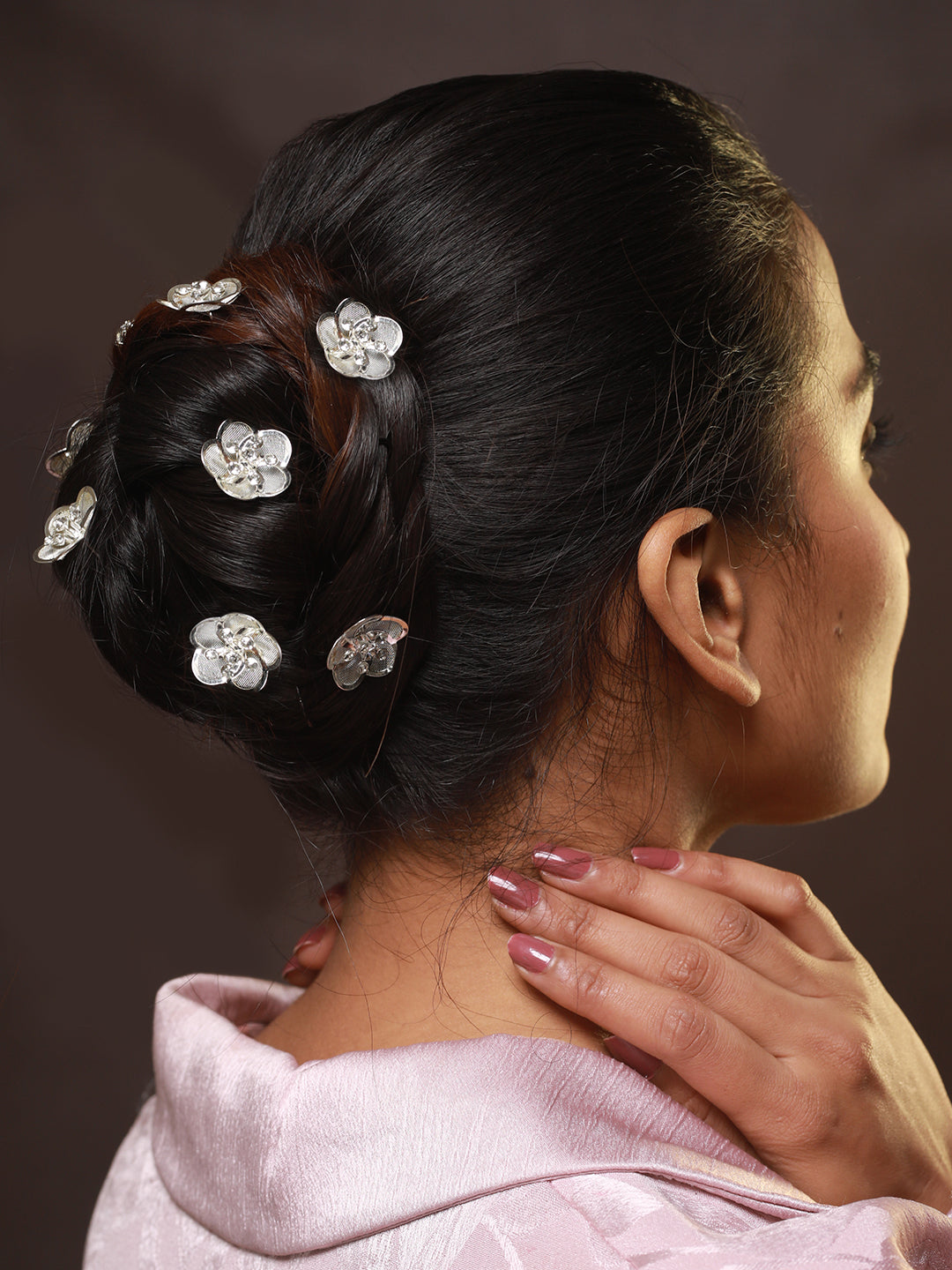 Women Set Of 12 Silver-Toned & White Embelished Beaded U Pins